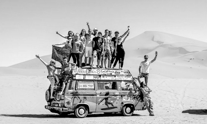 A couple is traveling the world with a bus. Supported by numerous sponsors, the journey is documented for a vast online community. The soaplike feed is about stories of love, betrayel and reconciliation. Everything is working out fine, until they got stuck in Africa.